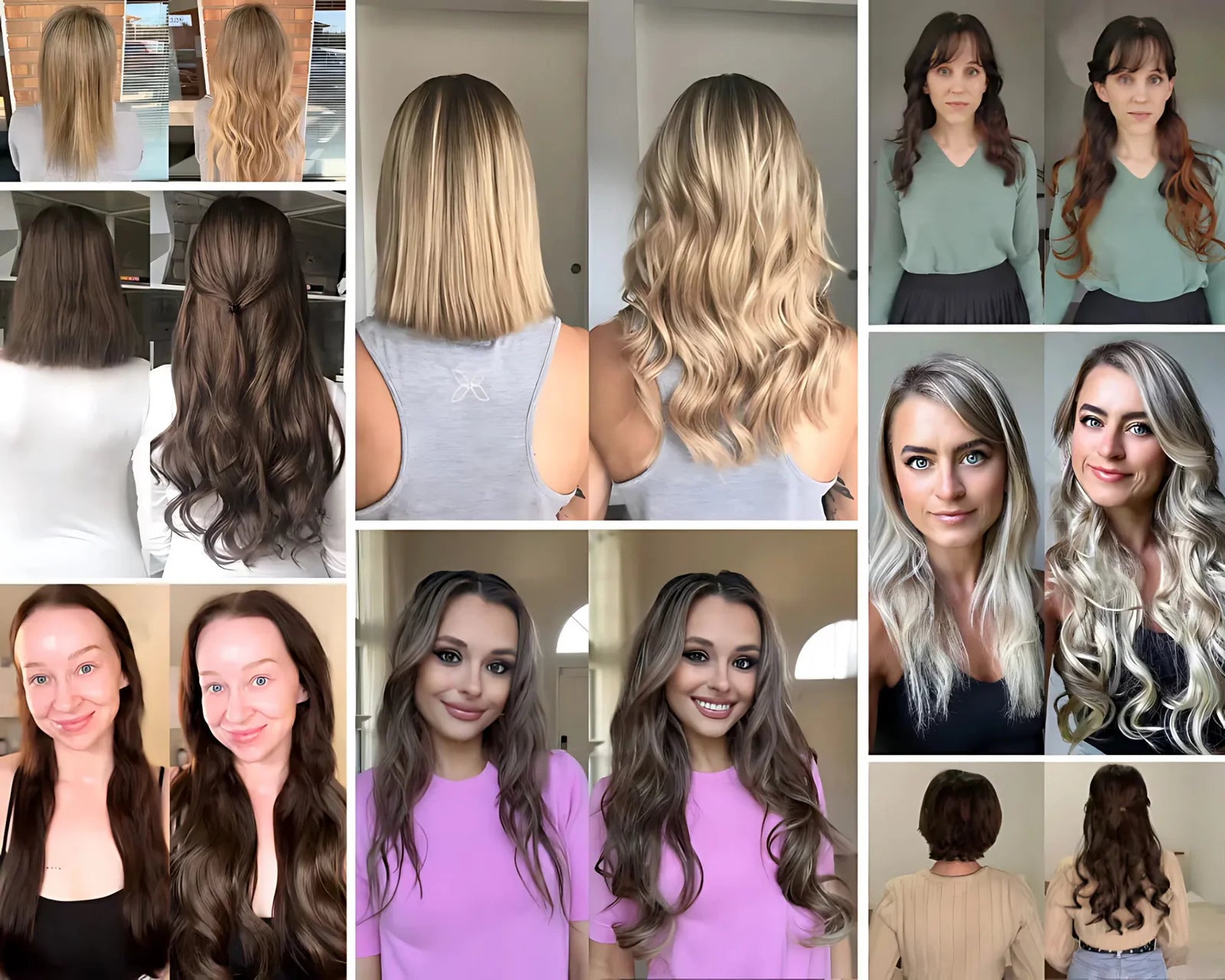 Obtiens une chevelure longue, dense et soyeuse sans coiffeur, sans colle, sans effort.